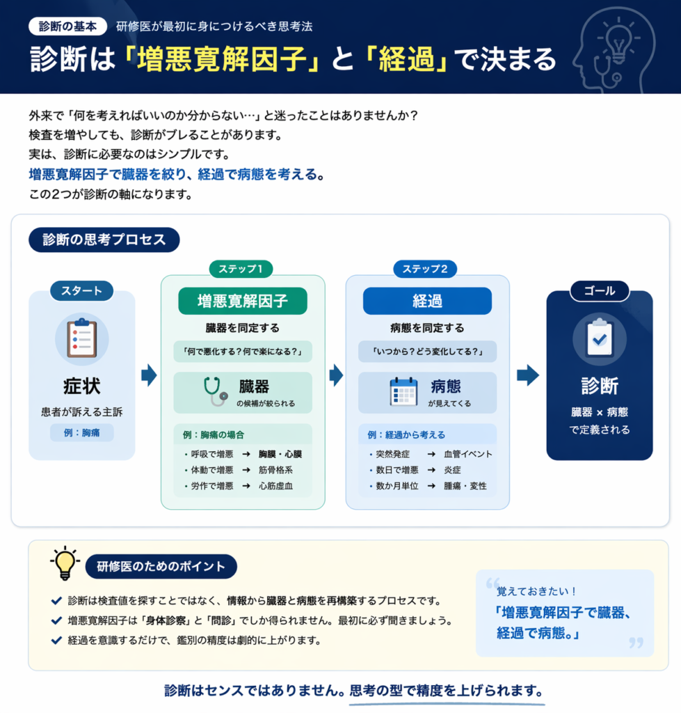病歴・身体所見から“臓器”と“病態”を再構築するプロセスです。